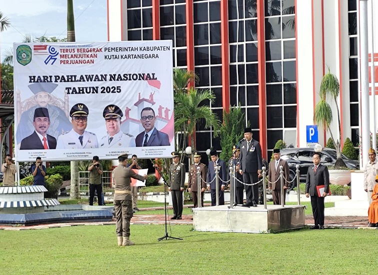 FRASA.ID, KUTAI KARTANEGARA-Pemerintah Kabupaten Kutai Kartanegara (Kukar) mengadakan upacara peringatan Hari Pahlawan 2025 di Halaman Kantor Bupati Kukar, Senin (10/11/2025). Upacara berlangsung khidmat dengan mengusung tema “Pahlawanku Teladanku, Terus Bergerak, Melanjutkan Perjuangan.”